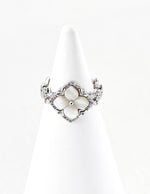 Keep luck and positive intentions close with this delicate adjustable ring. The classic four-leaf clover design represents the four blessings of Faith, Hope, Love, and Luck. It beautifully combines the soft iridescence of Mother of Pearl with the brilliance of Cubic Zirconia, all set in S925 Sterling Silver.