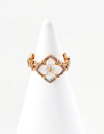 Adjustable Four-Leaf Clover Ring | Pearl & CZ Blessing Ring