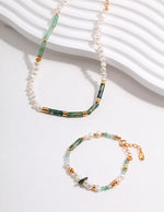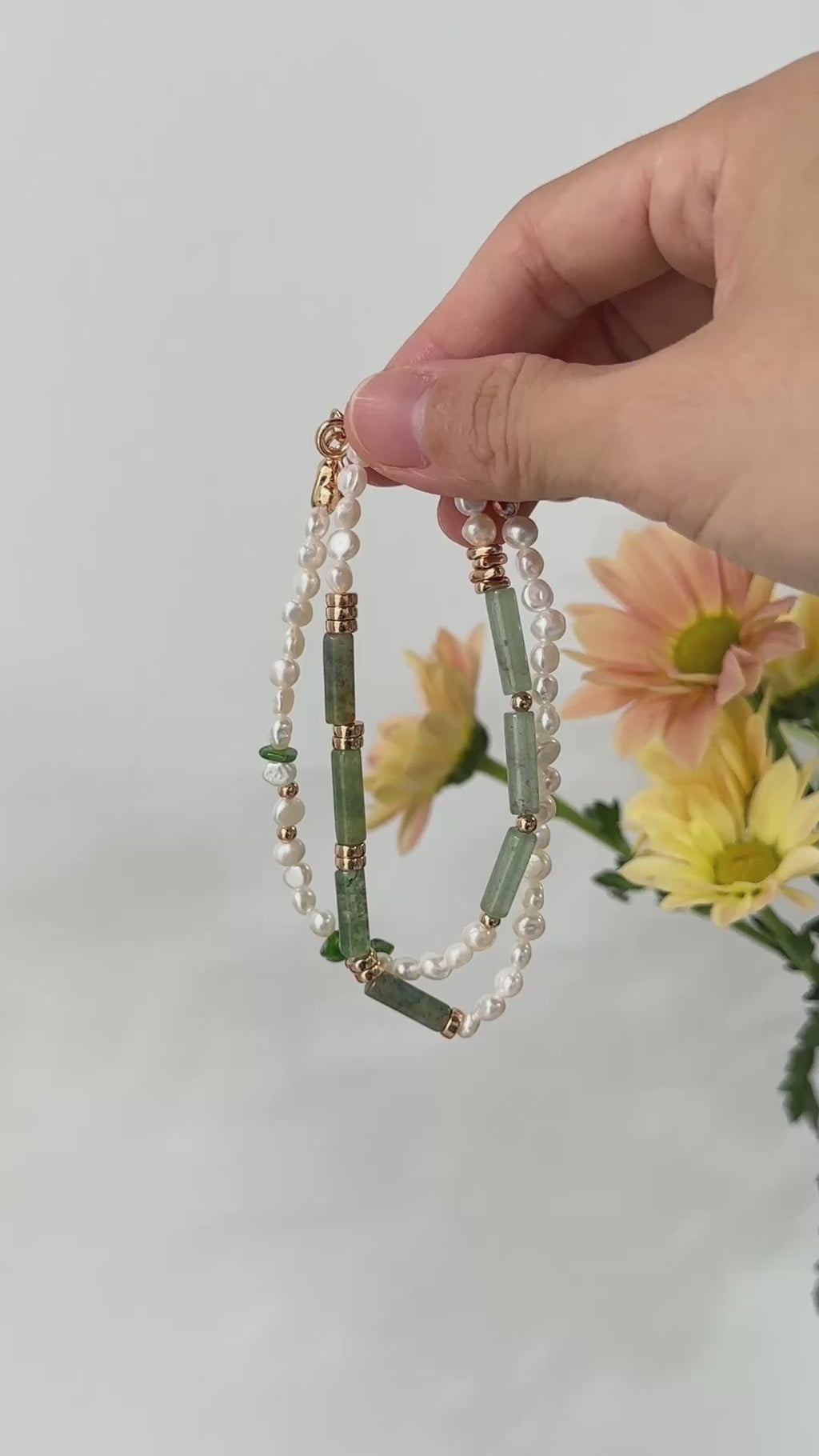 Material: S925 Sterling Silver / Natural Pearl / Moss Agate / Green Aventurine / Assorted Irregular Green Stone Chips